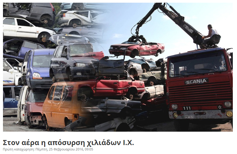 Έως τον Μάιο του 2016 παρατείνεται η προθεσμία απόσυρσης των αυτοκινήτων, με το Υπουργείο Οικονομικών να παρέχει κίνητρα για την αντικατάσταση των παλαιάς τεχνολογίας Ι.Χ.