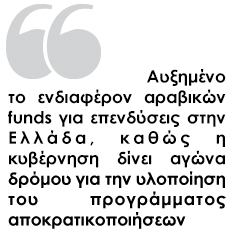 Ηχηρό παρών στην ελληνική αγορά δίνουν τα αραβικά πετροδολάρια, σε μια στιγμή όπου η κυβέρνηση επιχειρεί, για πολλοστή φορά, να επιταχύνει τις αποκρατικοποιήσεις.