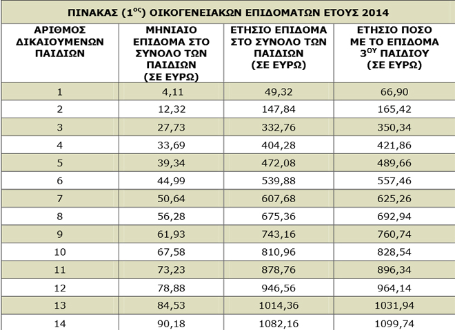 01-10-2014 για τους δικαιούχους με ένα παιδί