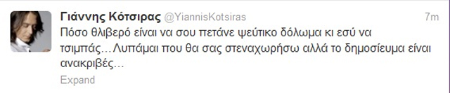 Mε μήνυμά του στο twitter απάντησε ο Γ. Κότσιρας: