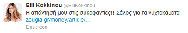 Αργότερα η διάσημη τραγουδίστρια κοινοποίησε στο twitter την απάντησή της μέσω της zougla.gr:
