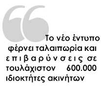 Η διευκρινιστική ανακοίνωση του Υπουργείου Οικονομικών για το νέο έντυπο φέρνει ταλαιπωρία και επιβαρύνσεις σε τουλάχιστον 600.000 ιδιοκτήτες ακινήτων, καθώς όσοι έχουν τακτοποιήσει ημιυπαίθριους χώρους θα πρέπει να τους δηλώσουν υποχρεωτικά. Αυτό σημαίνει ότι αυτομάτως αυξάνεται η επιφάνεια της κατοικίας του φορολογουμένου και το ποσό του φόρου που θα κληθεί να πληρώσει στην εφορία.