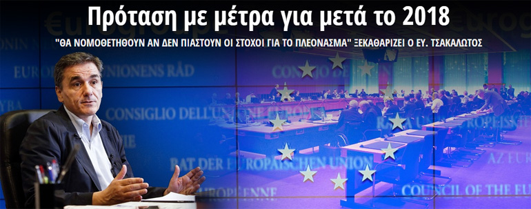 «Πρόθεση της κυβέρνησης είναι να καταθέσει πρόταση με περίγραμμα μέτρων, τα οποία θα ενεργοποιηθούν σε περίπτωση που δεν πιαστούν οι στόχοι για το πρωτογενές πλεόνασμα μετά το 2018»
