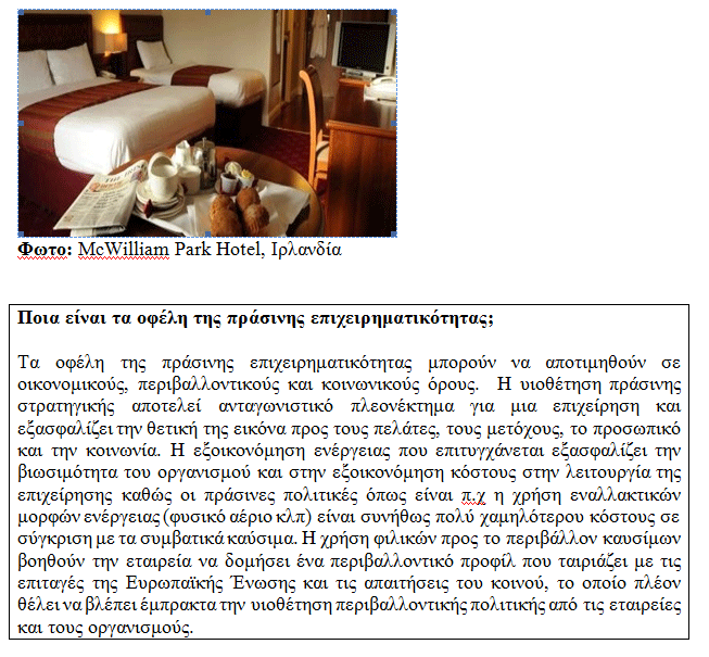 Παράλληλα, η διεύθυνση του ξενοδοχείου McWilliam Park Hotel στην Ιρλανδία, αποφάσισε ναν στραφεί στο φυσικό αέριο και όπως υποστήριξε ο Γενικός Διευθυντής του Ξενοδοχείου, κος Fergal Ryan, «η ξενοδοχειακή μονάδα πέτυχε σημαντική εξοικονόμηση στα κόστη ενώ το 2011 κέρδισε το βραβείο «ECO», ως αναγνώριση του χαμηλού οικολογικού αποτυπώματός του».