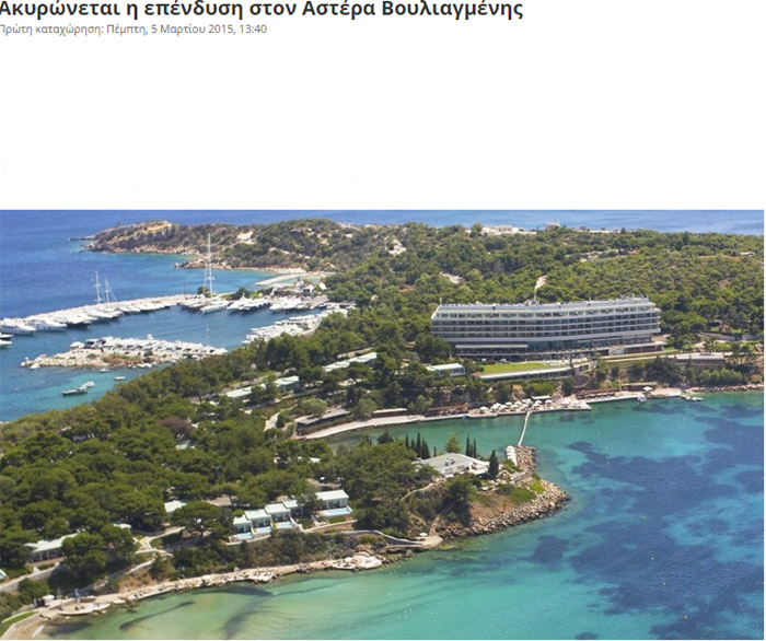 Υπενθυμίζεται ότι με απόφαση του Συμβουλίου της Επικρατείας κρίθηκε μη νόμιμο το σκέλος του προεδρικού διατάγματος για την ανάπτυξη του Αστέρα που προβλέπει τη δημιουργία νέων μονοκατοικιών («καμπάνες») και την κατασκευή χτισμάτων στο αδόμητο τμήμα της χερσονήσου.