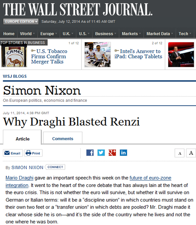 Όπως τονίζει ο κ. Νίξον, «ακόμη και σήμερα, παρά την ανάκαμψη των οικονομιών και τις δικές του αποτυχημένες προβλέψεις, το ΔΝΤ συνεχίζει να προτείνει περαιτέρω δημοσιονομικά και νομισματικά μέτρα τόνωσης, μια πολιτική που ικανοποιεί τις αριστερές κυβερνήσεις στη Γαλλία και την Ιταλία, αλλά είναι απογοητευτική για πολλούς άλλους πολιτικούς της ευρωζώνης που πιστεύουν ότι το μεγαλύτερο εμπόδιο στην ισχυρότερη ανάπτυξη της ευρωζώνης είναι η έλλειψη προόδου όσον αφορά τις διαρθρωτικές μεταρρυθμίσεις, κυρίως στη Γαλλία και την Ιταλία».