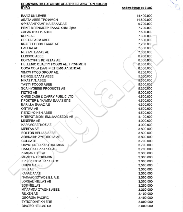 Στους προμηθευτές 14,5 εκατομμύρια ευρώ.