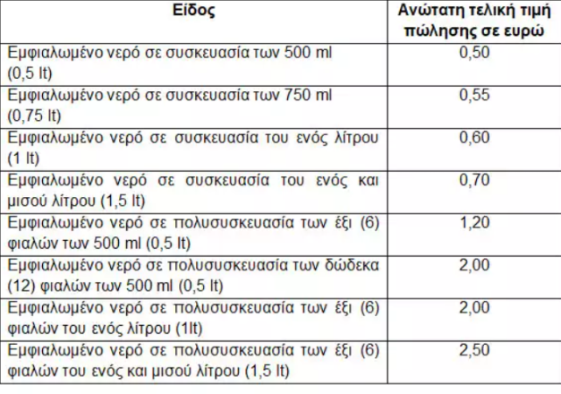 Συγκεκριμένα τον καθορισμό ανώτατης τιμής πώλησης στο εμφιαλωμένο νερό που πωλείται στη Θεσσαλία, με στόχο την προστασία του καταναλωτικού κοινού από κρούσματα αθέμιτης κερδοφορίας, προβλέπει απόφαση που υπέγραψε ο Υπουργός Ανάπτυξης, κ. Κώστας Σκρέκας.