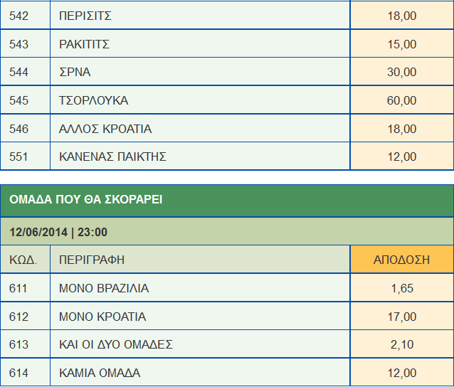 Το Παγκόσμιο Κύπελλο ξεκινάει απόψε με την αναμέτρηση ανάμεσα στην Βραζιλία και την Κροατία. Δείτε όλα τα ειδικά στοιχήματα και τις αποδόσεις που προσφέρει...