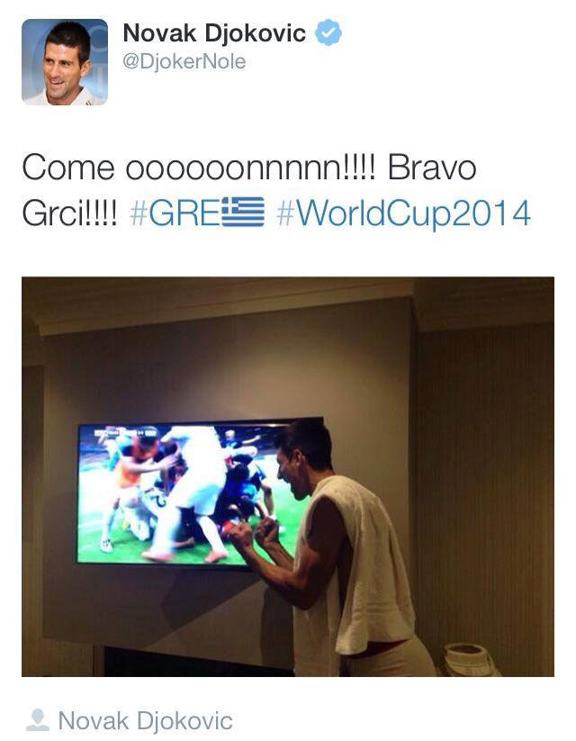Πάμε! Μπράβο Έλληνες… έγραψε στο προσωπικό λογαριασμό που διατηρεί στο twitter το νούμερο 2 του κόσμου στην επίσημη κατάταξη της ΑΤP. Η φωτογραφία μιλάει από μόνη της.