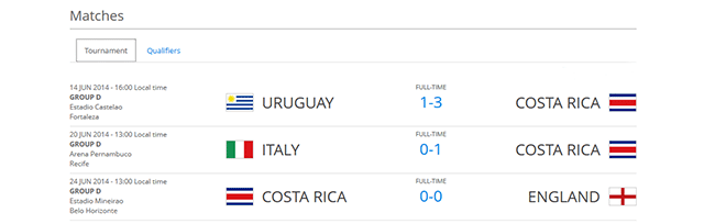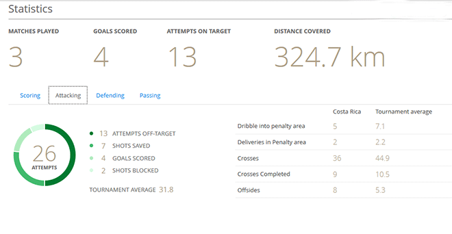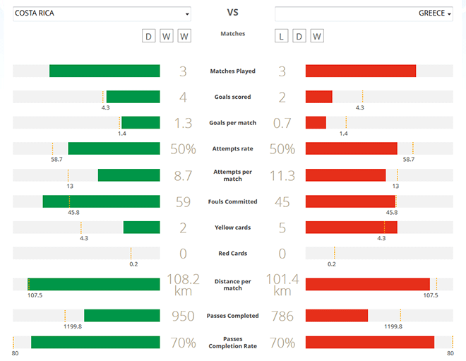 Η Κόστα Ρίκα, όπως και το Βέλγιο, ήταν οι ομάδες που τερμάτισαν στην πρώτη θέση των ομίλων τους έχοντας σημειώσει τα λιγότερα γκολ (από τέσσερα), ενώ η Ελλάδα είχε με τη σειρά της τη χαμηλότερη επιθετική συγκομιδή (δύο γκολ) από όλες τις ομάδες της φάσης των «16».