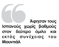 Ο χρόνος κυλούσε και λίγο πριν το σφύριγμα του διαιτητή για την ανάπαυλα ο Αρανγκίθ πέτυχε ακόμα ένα γκολ, στέλνοντας τους Παγκόσμιους Πρωταθλητές του 2010 στο… καναβάτσο.