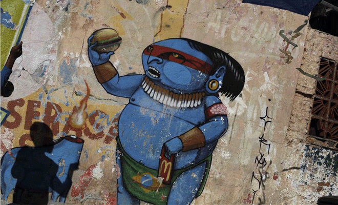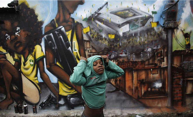 Το γεγονός ότι η Βραζιλία ανέλαβε το υπέρογκο κόστος της διοργάνωσης του πρωταθλήματος, σε μια χρονική στιγμή που η χώρα πλήττεται από φτώχεια, πείνα και βία, έχει προκαλέσει κύμα δυσαρέσκειας στους κατοίκους. Αρκετοί καλλιτέχνες γκράφιτι αποφάσισαν να αποτυπώσουν τα συναισθήματά τους κατά του Μουντιάλ σε ευφάνταστα γκράφιτι που στολίζουν τους τοίχους των δρόμων του Σάο Πάολο και άλλων μεγάλων πόλεων της χώρας. Οι φωτογραφίες μιλούν από μόνες τους.