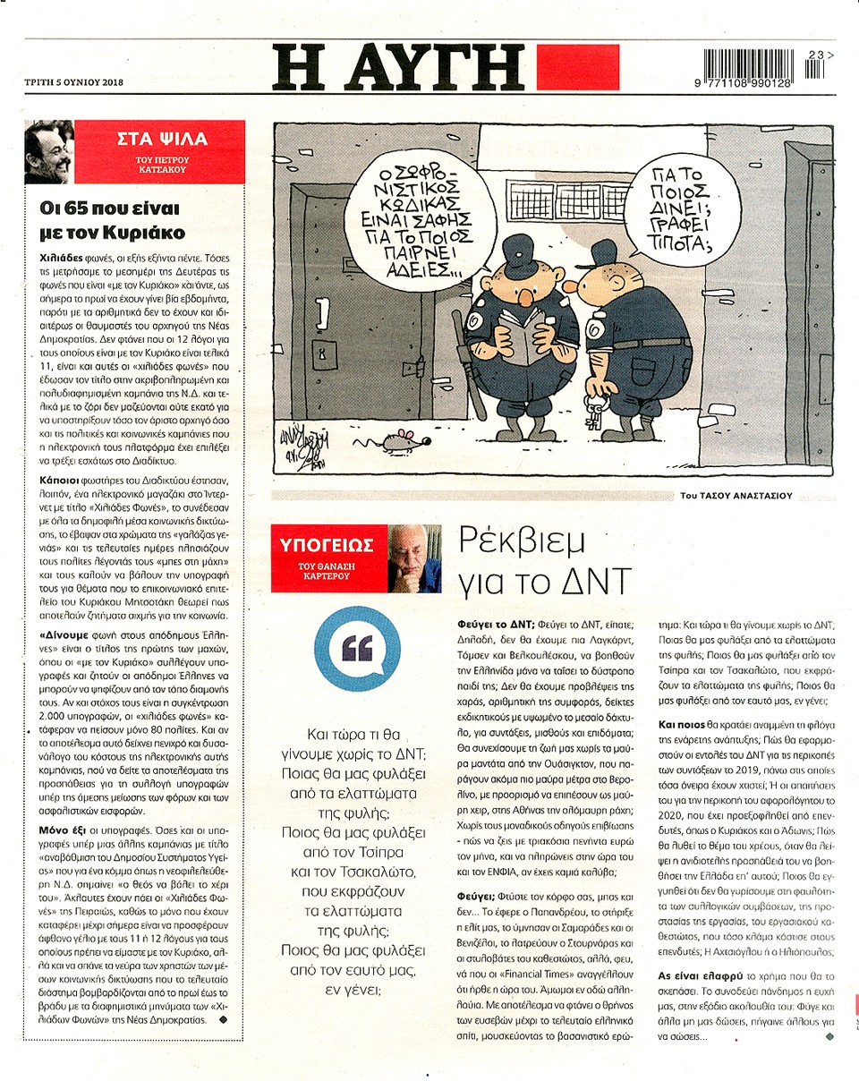 Η ΑΥΓΗ - 5 Ιουνίου 2018