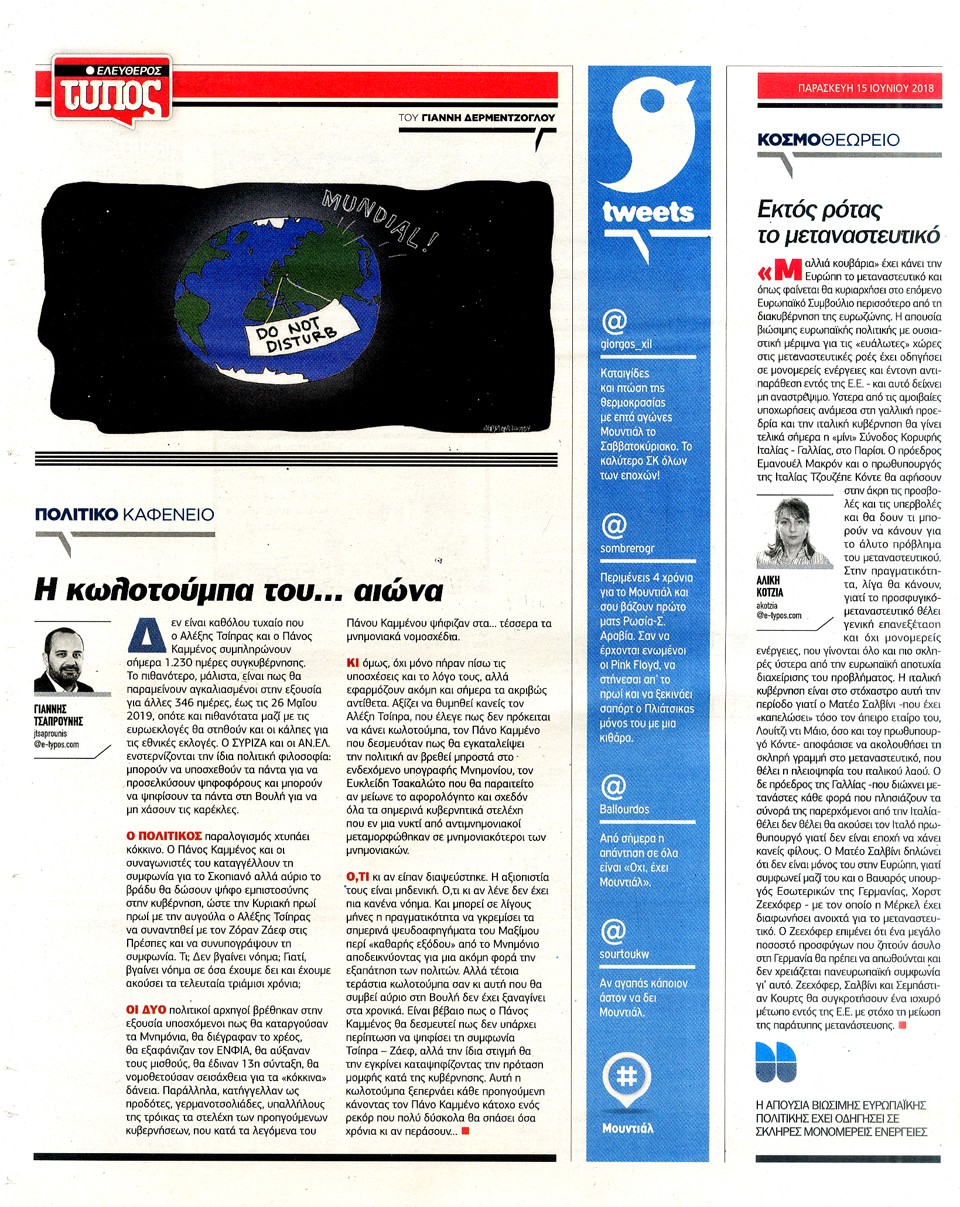 ΕΛΕΥΘΕΡΟΣ ΤΥΠΟΣ - 15 Ιουνίου 2018