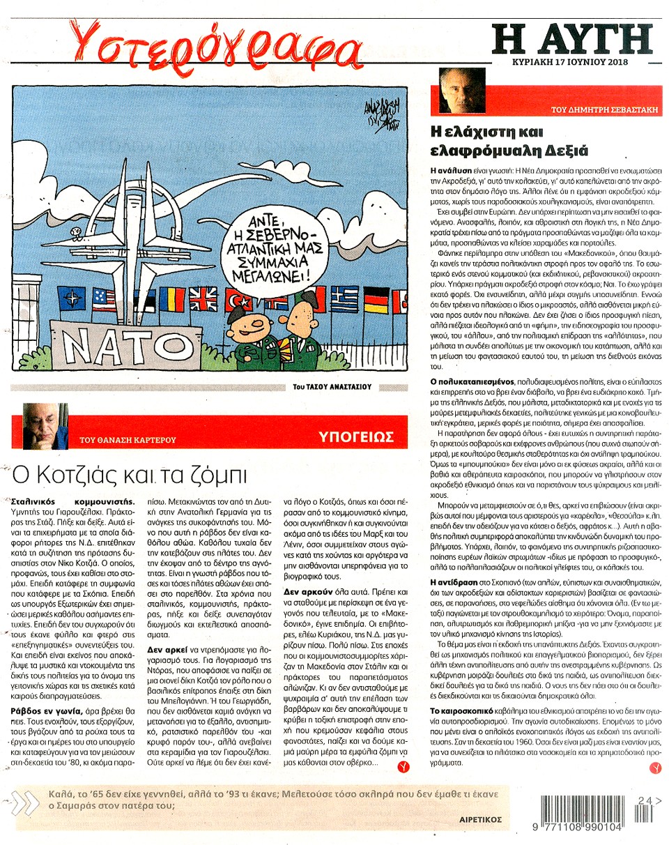 Η ΑΥΓΗ ΤΗΣ ΚΥΡΙΑΚΗΣ - 17 Ιουνίου 2018