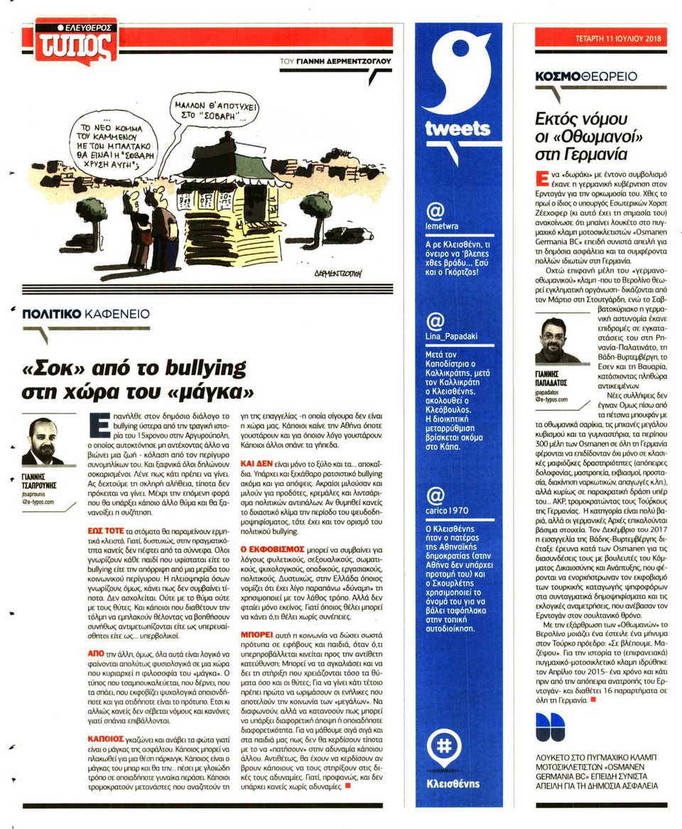 ΕΛΕΥΘΕΡΟΣ ΤΥΠΟΣ - 11 Ιουλίου 2018