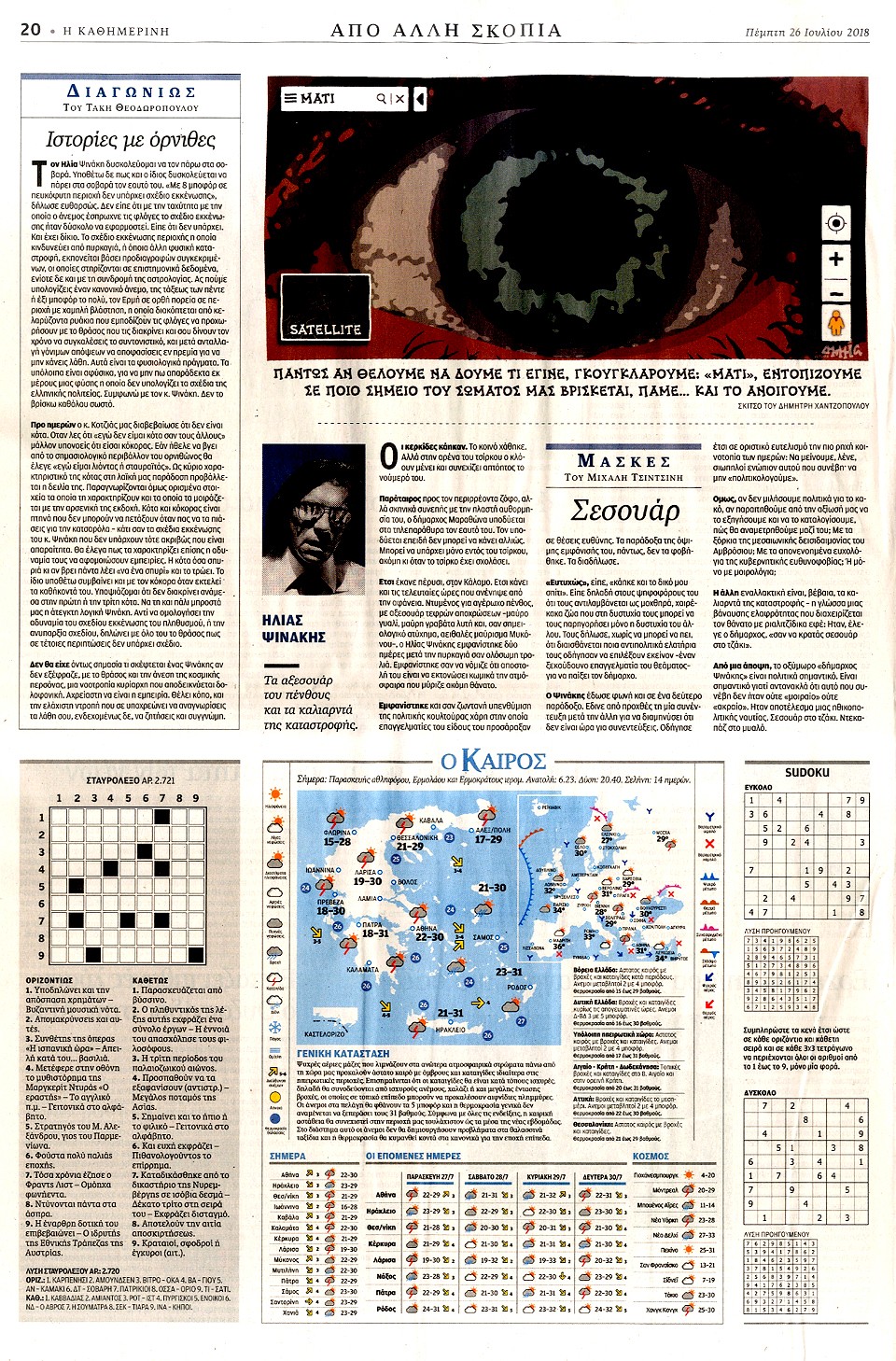 ΚΑΘΗΜΕΡΙΝΗ - 26 Ιουλίου 2018