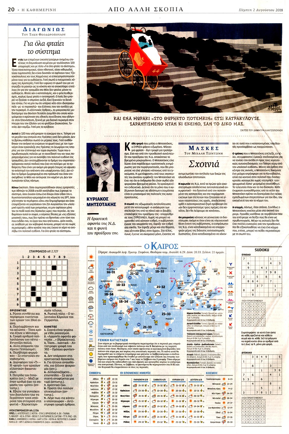 ΚΑΘΗΜΕΡΙΝΗ - 2 Αυγούστου 2018