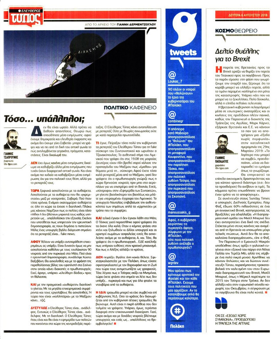 ΕΛΕΥΘΕΡΟΣ ΤΥΠΟΣ - 6 Αυγούστου 2018