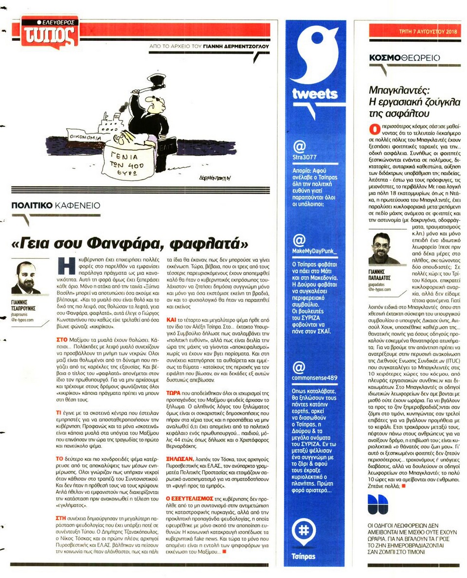 ΕΛΕΥΘΕΡΟΣ ΤΥΠΟΣ - 7 Αυγούστου 2018