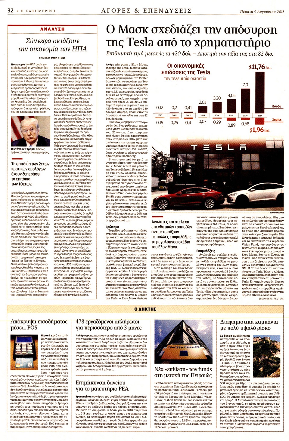 ΚΑΘΗΜΕΡΙΝΗ - 9 Αυγούστου 2018
