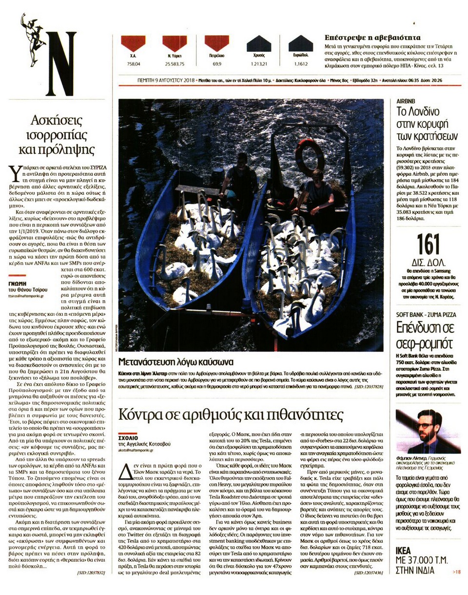 ΝΑΥΤΕΜΠΟΡΙΚΗ - 9 Αυγούστου 2018