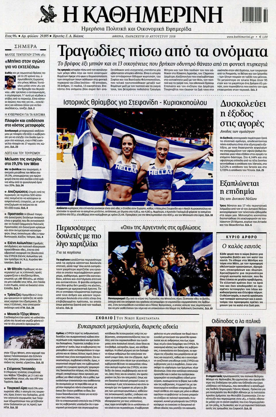 ΚΑΘΗΜΕΡΙΝΗ - 10 Αυγούστου 2018