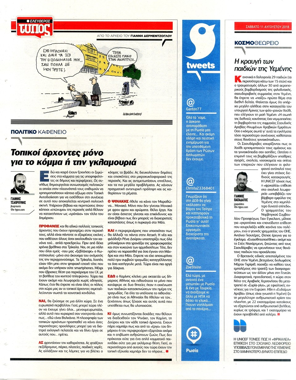 ΕΛΕΥΘΕΡΟΣ ΤΥΠΟΣ - 11 Αυγούστου 2018