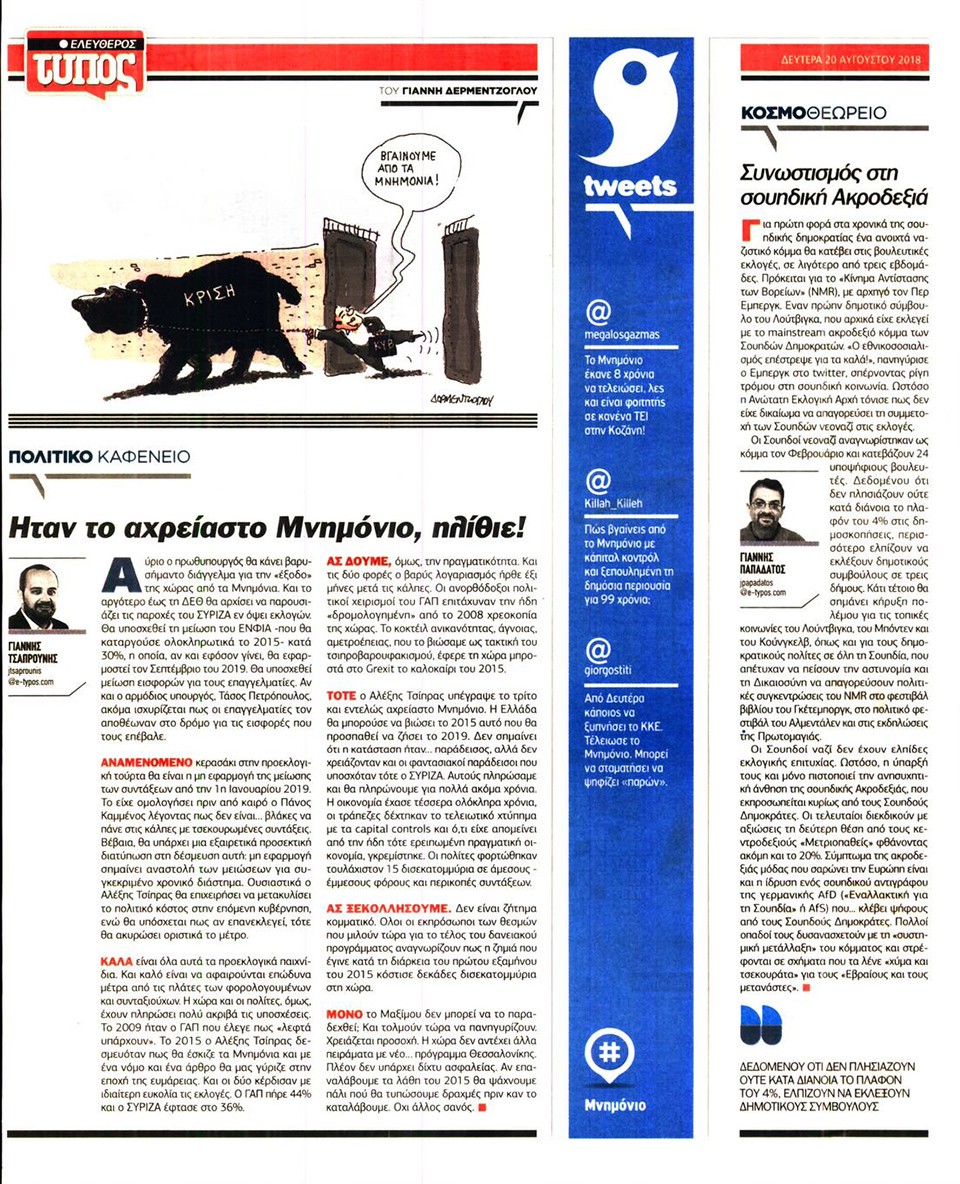 ΕΛΕΥΘΕΡΟΣ ΤΥΠΟΣ - 20 Αυγούστου 2018