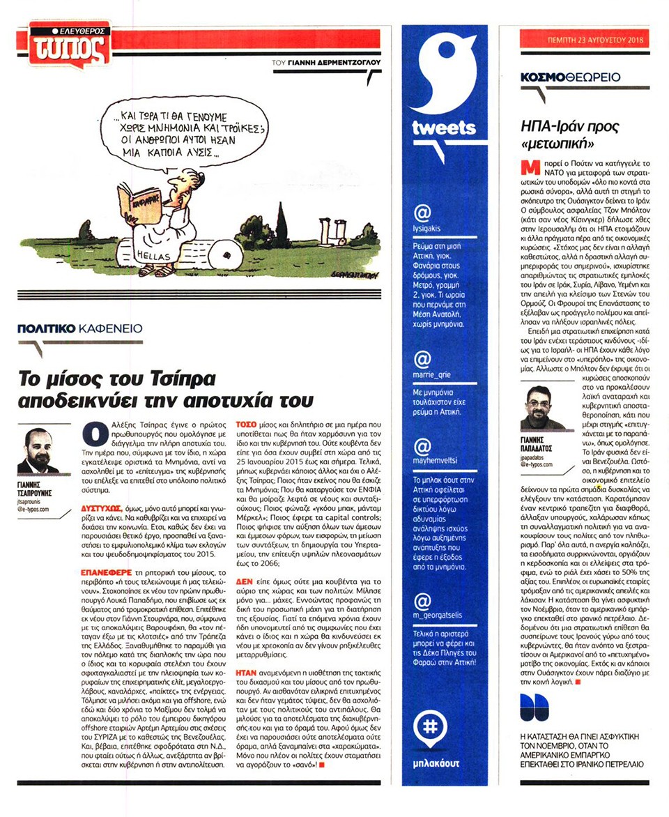 ΕΛΕΥΘΕΡΟΣ ΤΥΠΟΣ - 23 Αυγούστου 2018