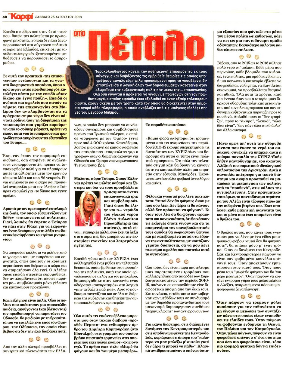 ΣΤΟ ΚΑΡΦΙ - 25 Αυγούστου 2018