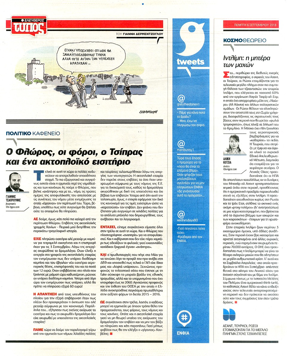 ΕΛΕΥΘΕΡΟΣ ΤΥΠΟΣ - 6 Σεπτεμβρίου 2018