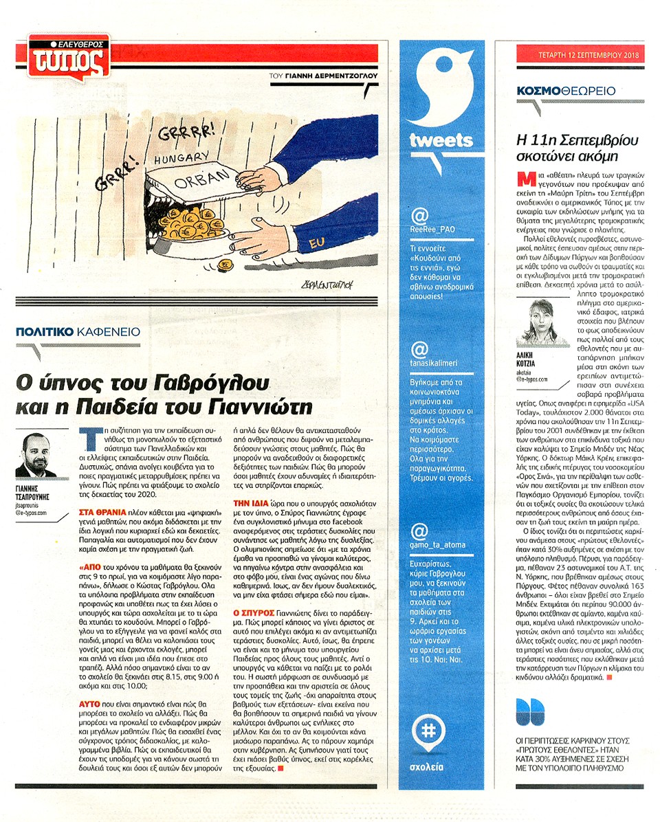 ΕΛΕΥΘΕΡΟΣ ΤΥΠΟΣ - 12 Σεπτεμβρίου 2018