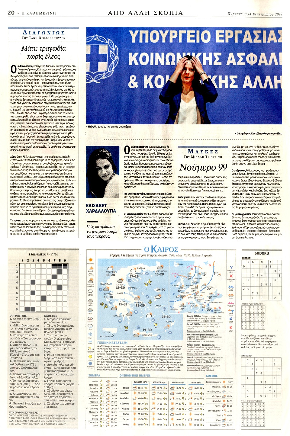 ΚΑΘΗΜΕΡΙΝΗ - 14 Σεπτεμβρίου 2018