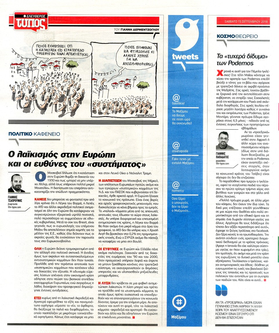 ΕΛΕΥΘΕΡΟΣ ΤΥΠΟΣ - 15 Σεπτεμβρίου 2018