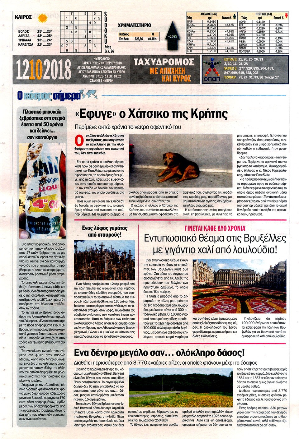 ΤΑΧΥΔΡΟΜΟΣ - 12 Οκτωβρίου 2018