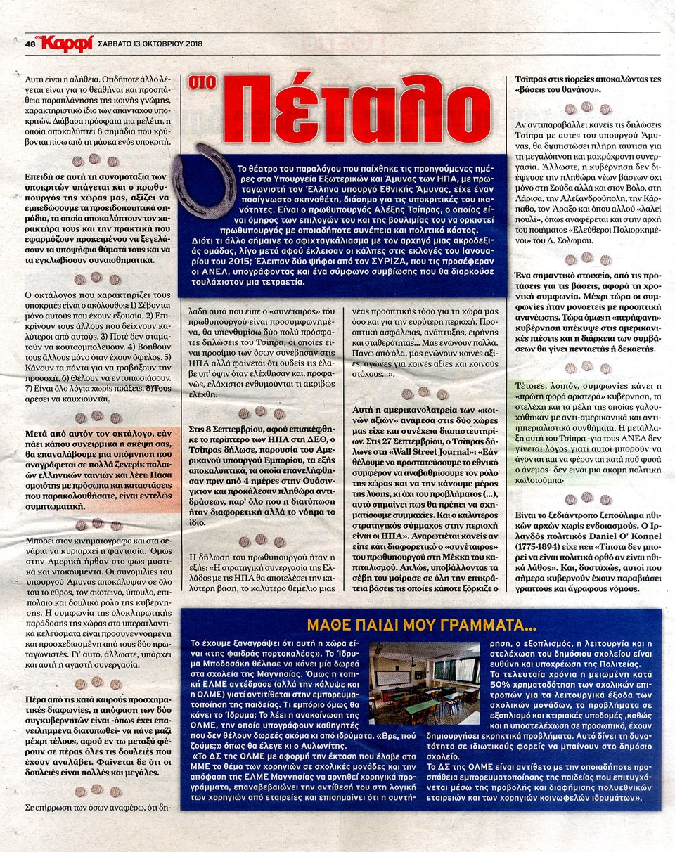 ΣΤΟ ΚΑΡΦΙ - 13 Οκτωβρίου 2018