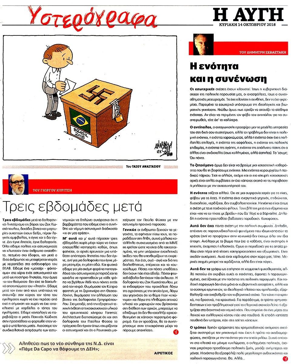 Η ΑΥΓΗ ΤΗΣ ΚΥΡΙΑΚΗΣ - 14 Οκτωβρίου 2018