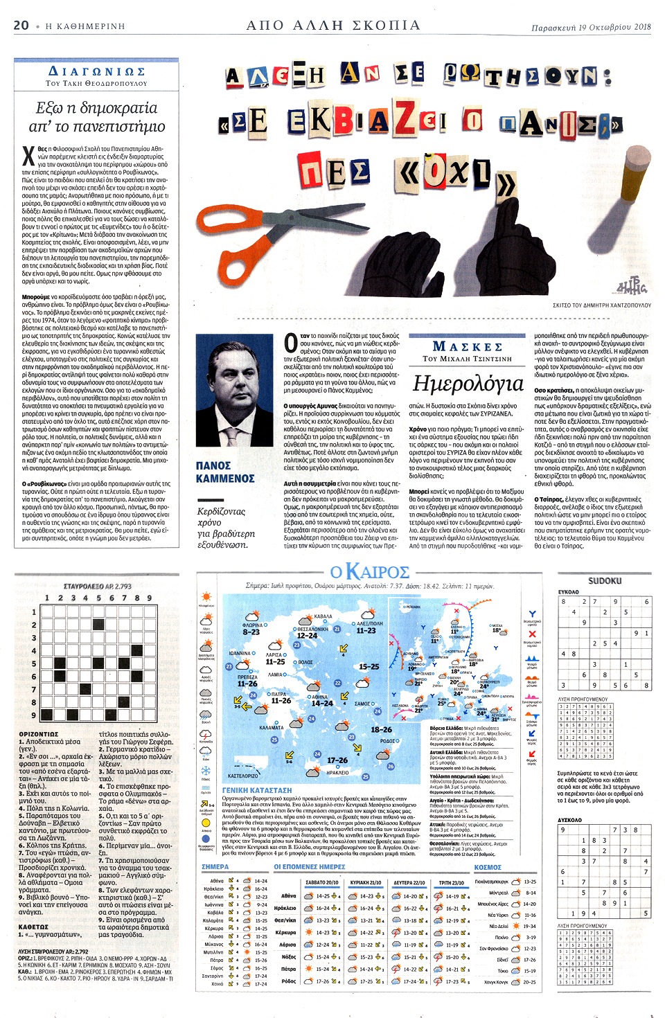 ΚΑΘΗΜΕΡΙΝΗ - 19 Οκτωβρίου 2018