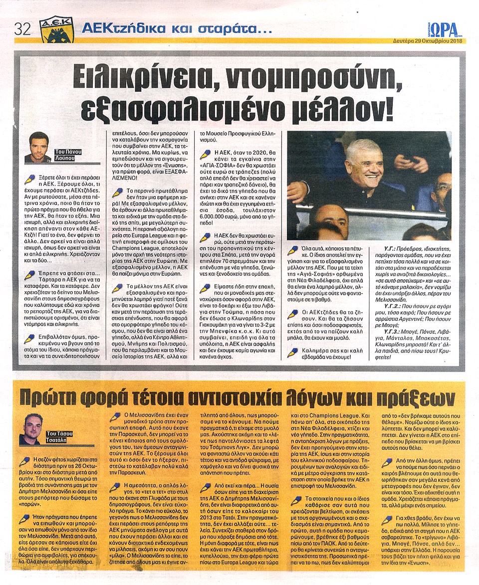 ΑΘΛΗΤΙΚΗ ΩΡΑ ΤΩΝ ΣΠΟΡ - 29 Οκτωβρίου 2018
