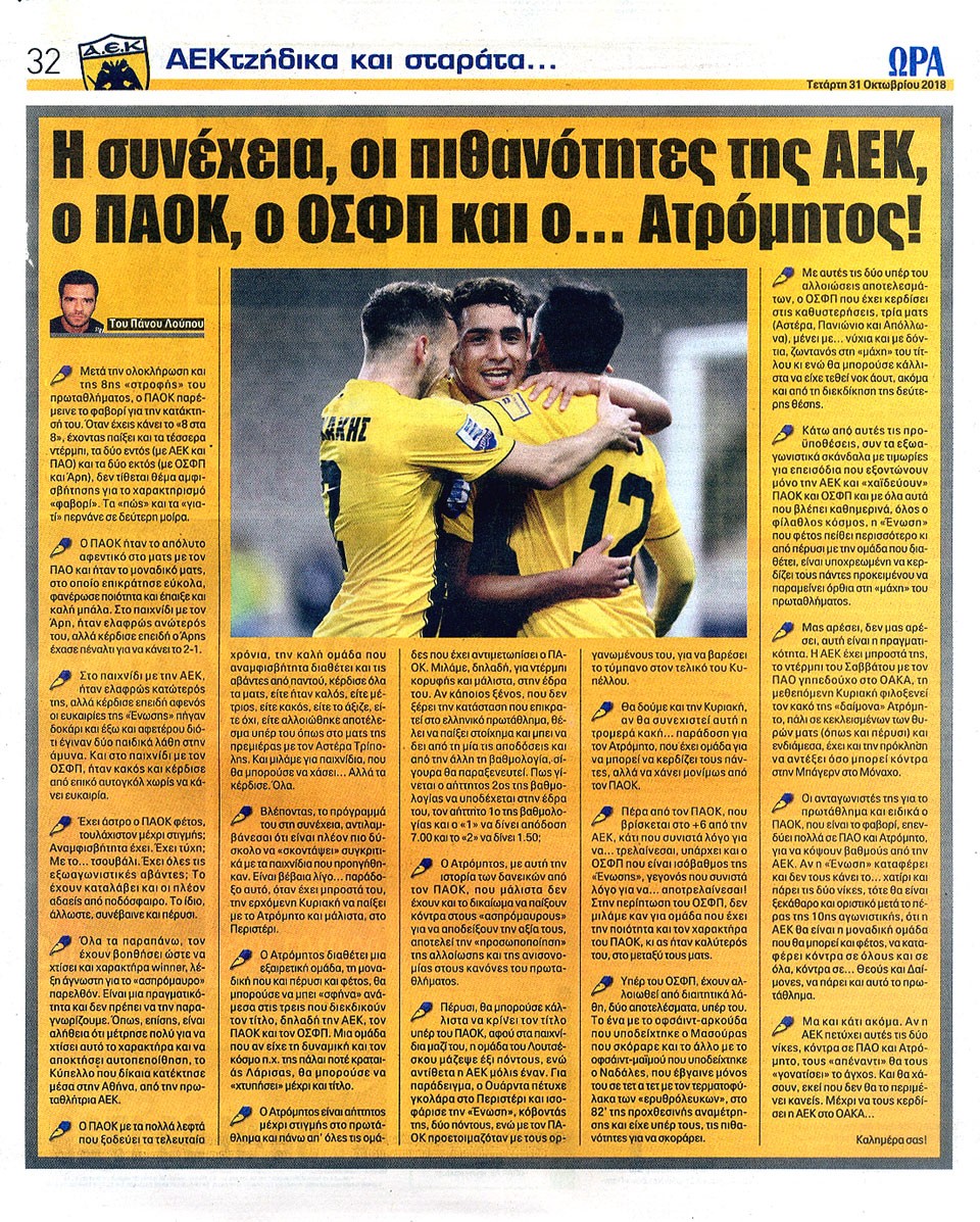 ΑΘΛΗΤΙΚΗ ΩΡΑ ΤΩΝ ΣΠΟΡ - 31 Οκτωβρίου 2018