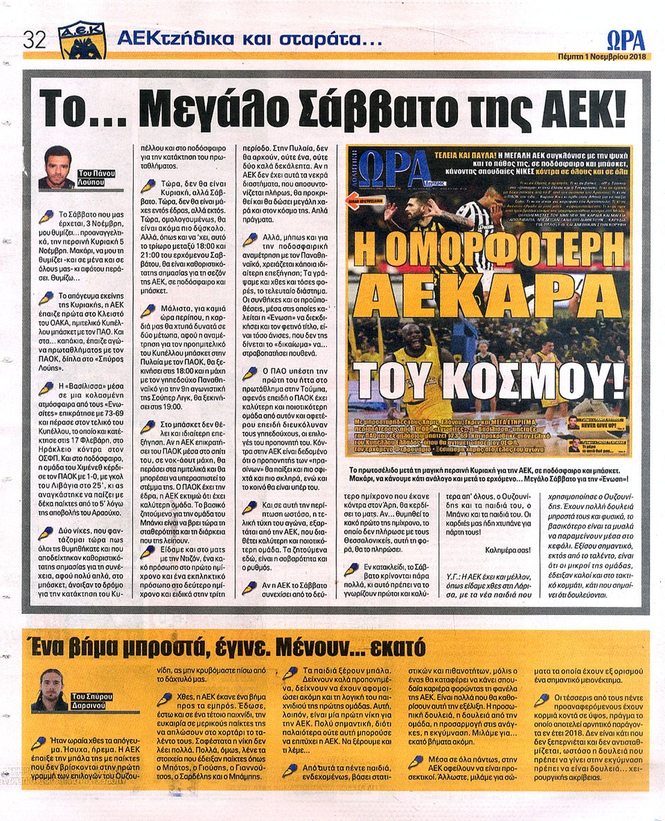 ΑΘΛΗΤΙΚΗ ΩΡΑ ΤΩΝ ΣΠΟΡ - 1 Νοεμβρίου 2018