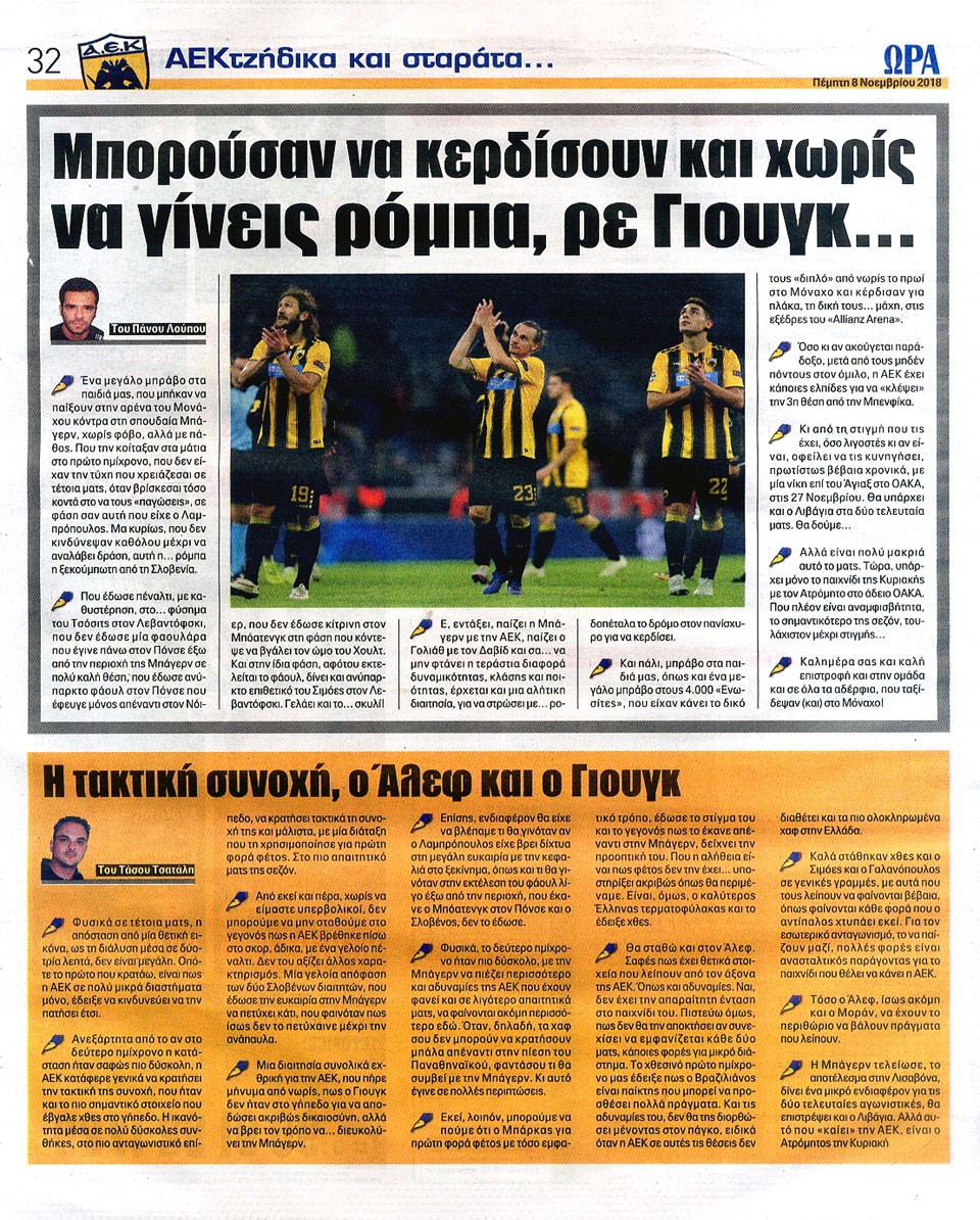 ΑΘΛΗΤΙΚΗ ΩΡΑ ΤΩΝ ΣΠΟΡ - 8 Νοεμβρίου 2018