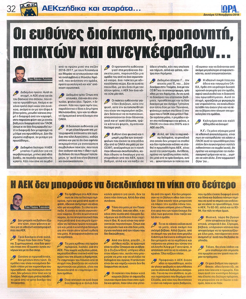 ΑΘΛΗΤΙΚΗ ΩΡΑ ΤΩΝ ΣΠΟΡ - 12 Νοεμβρίου 2018