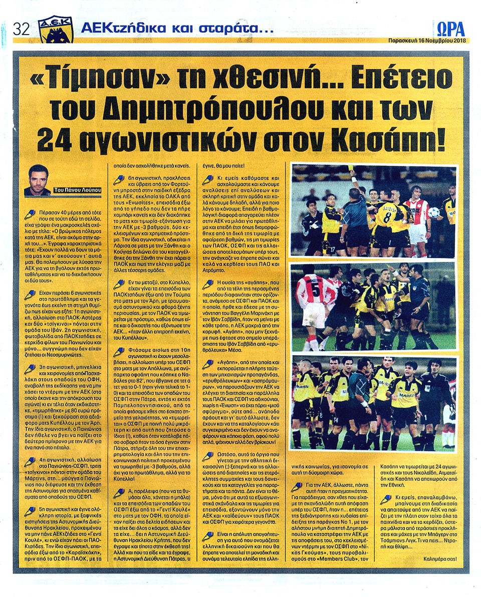 ΑΘΛΗΤΙΚΗ ΩΡΑ ΤΩΝ ΣΠΟΡ - 16 Νοεμβρίου 2018