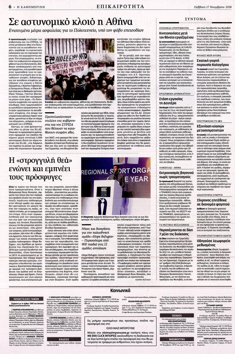 ΚΑΘΗΜΕΡΙΝΗ - 17 Νοεμβρίου 2018