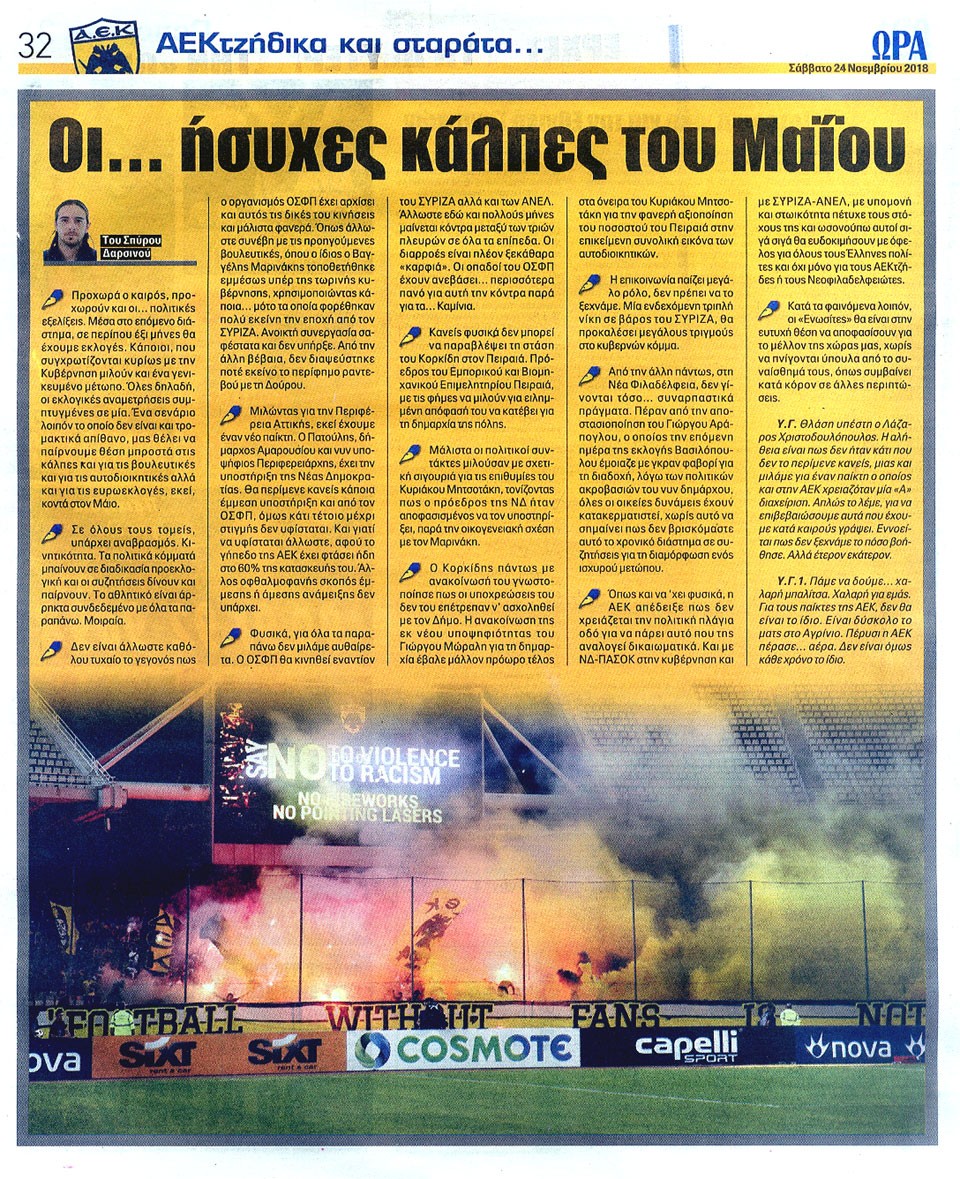 ΑΘΛΗΤΙΚΗ ΩΡΑ ΤΩΝ ΣΠΟΡ - 24 Νοεμβρίου 2018