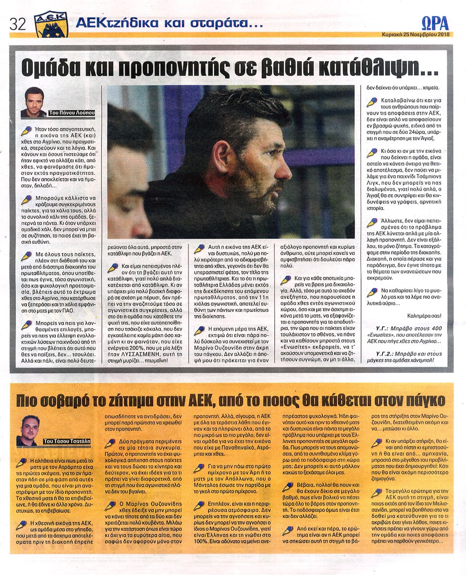 ΑΘΛΗΤΙΚΗ ΩΡΑ ΤΩΝ ΣΠΟΡ - 25 Νοεμβρίου 2018