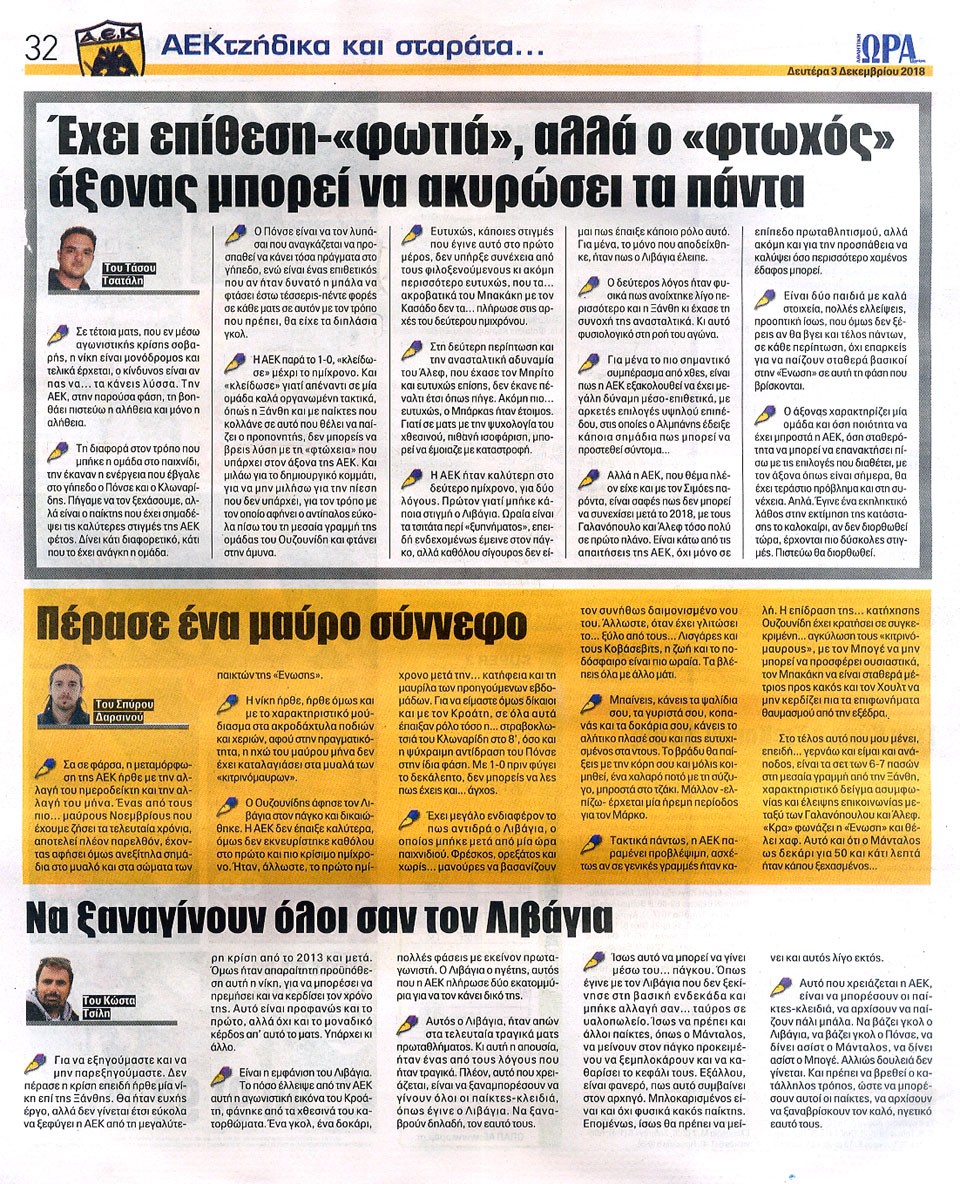 ΑΘΛΗΤΙΚΗ ΩΡΑ ΤΩΝ ΣΠΟΡ - 3 Δεκεμβρίου 2018